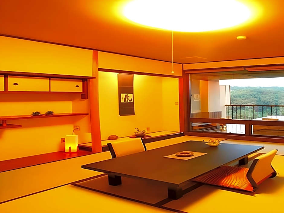 The spacious twin room provides air conditioning, tatami, a terrace with mountain views as well as a private bathroom featuring a shower. The unit offers 2 beds and 4 futons.